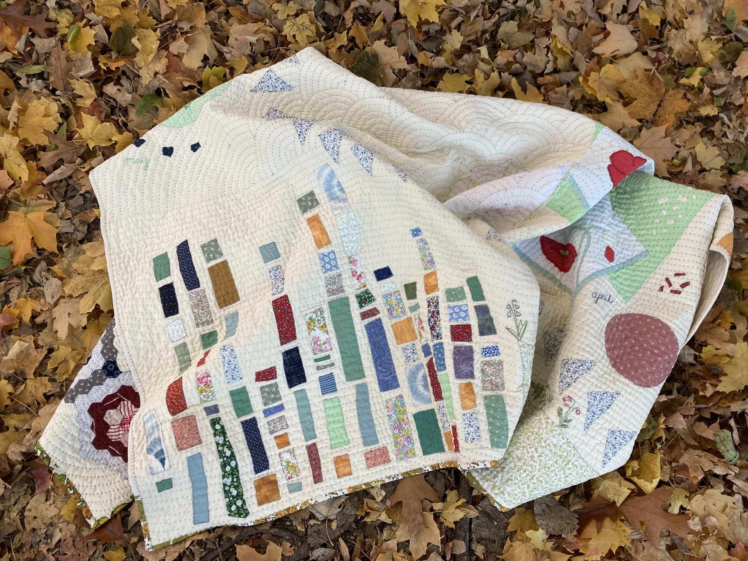 hand-stitching and quilting using repurposed and inherited materials