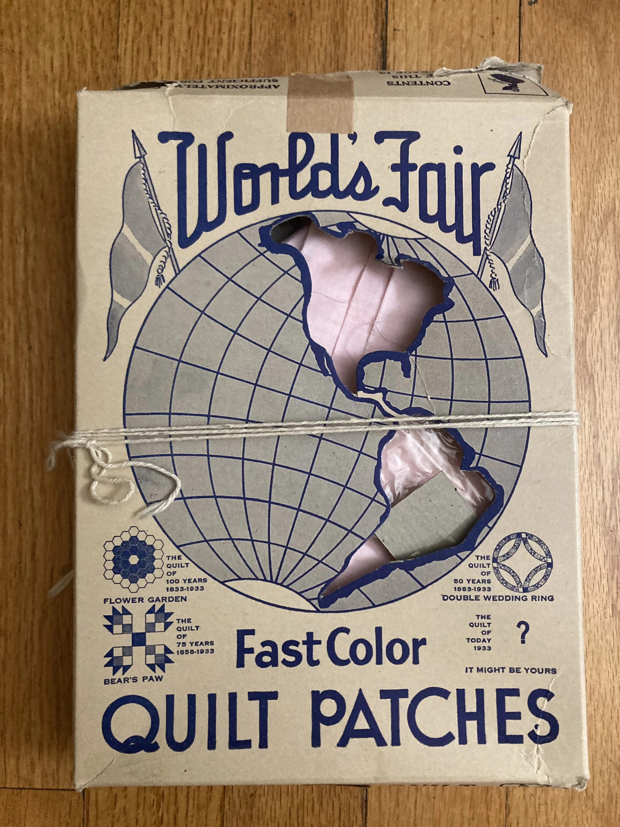 cotton fabric scraps found in a Worlds Fair box at a thrift store